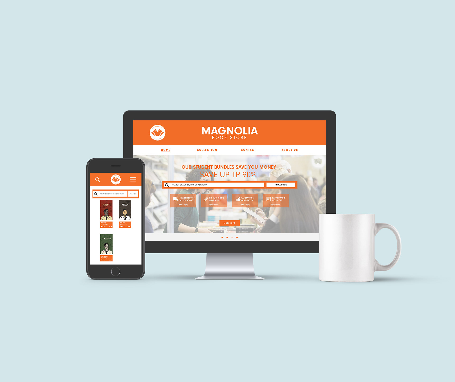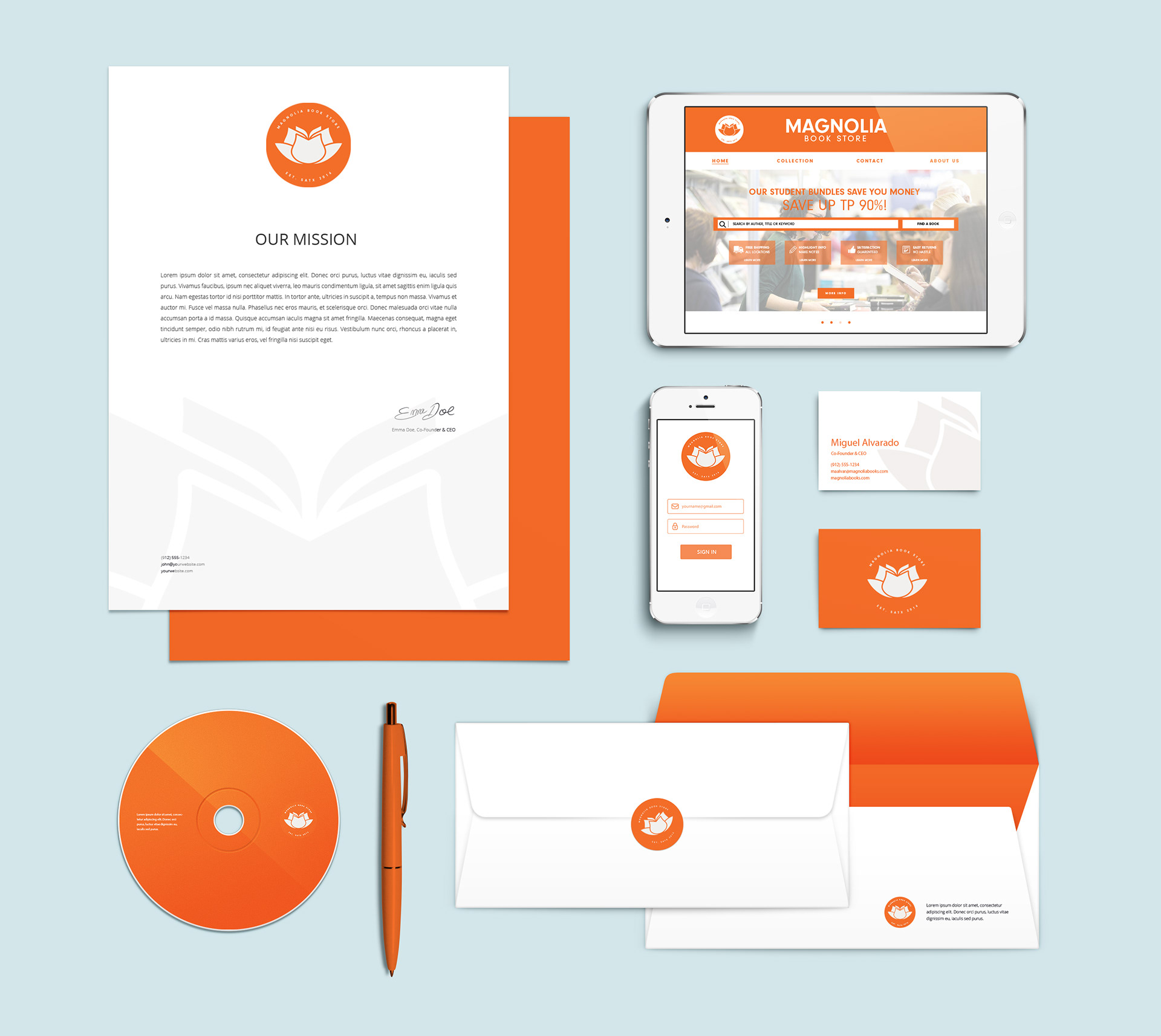An identity and brand for the MagnoliaPublishing Bookstore which features a natural, historic, and classic theme brought into the modern world.
