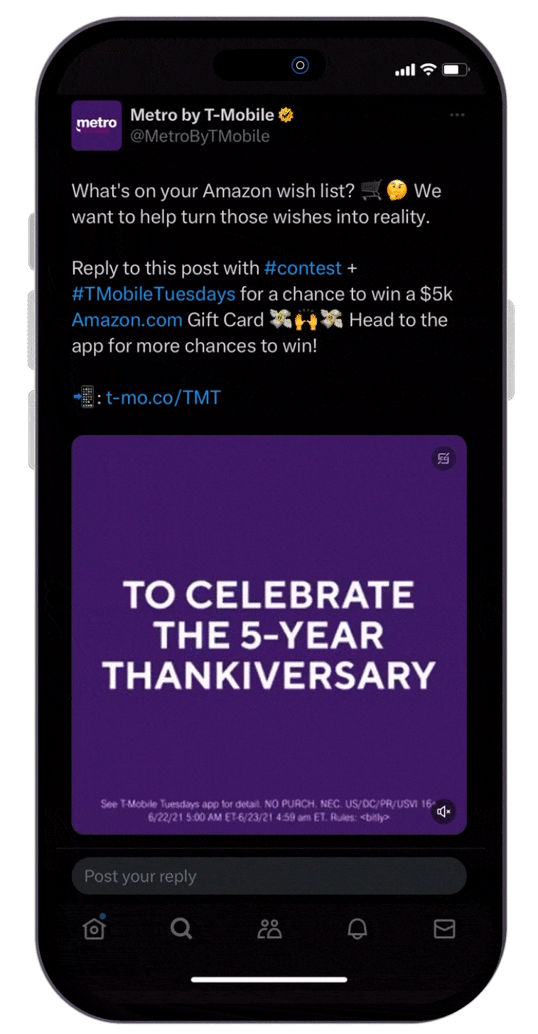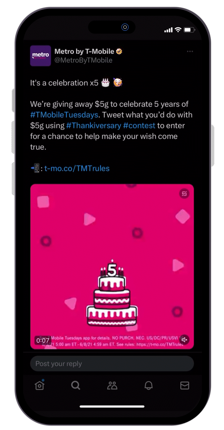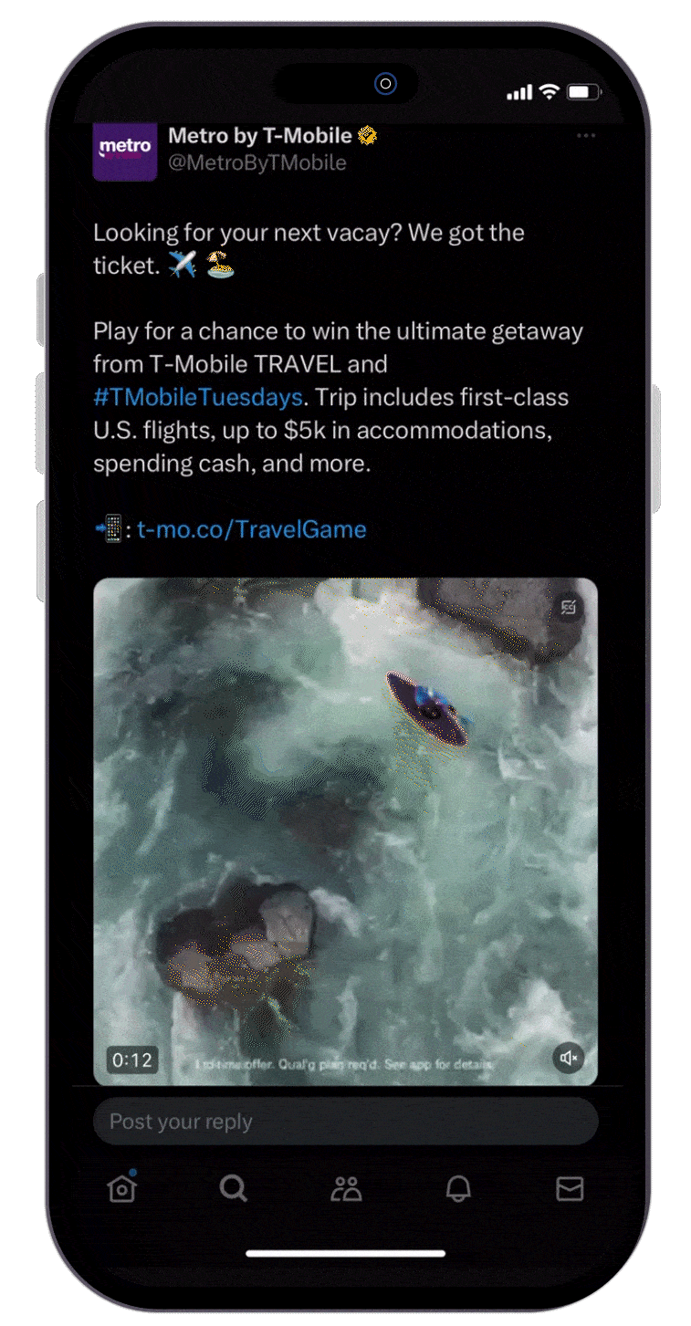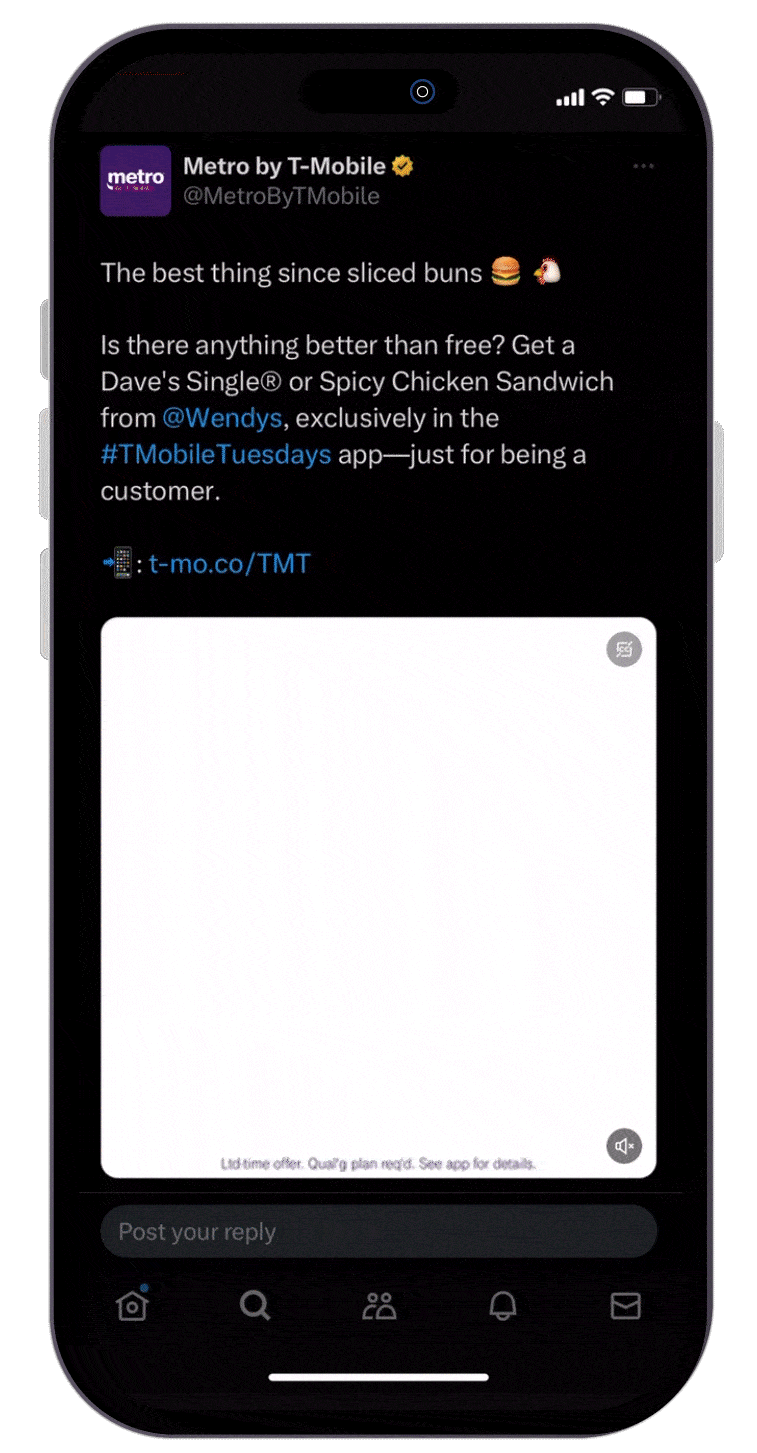 During my inaugural year at T-Mobile, I collaborated with the dynamic T-Mobile Tuesdays team. My main responsibility involved crafting an array of social media ads spotlighting the exciting perks awaiting customers each week. The spotlight for these promotions predominantly shone on Twitter, our primary hub for customer engagement. Below, you'll find showcases of a few projects close to my heart. Teaming up with talented copywriters, we churned out vibrant and playful creative assets designed to captivate attention and drive more traffic to our T-Mobile Tuesday app.