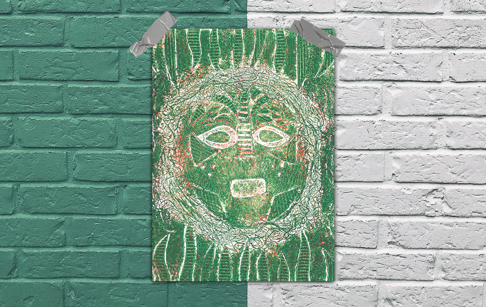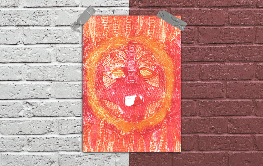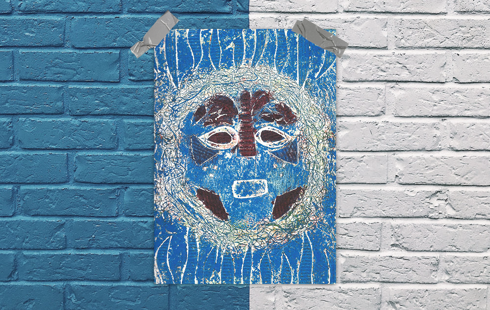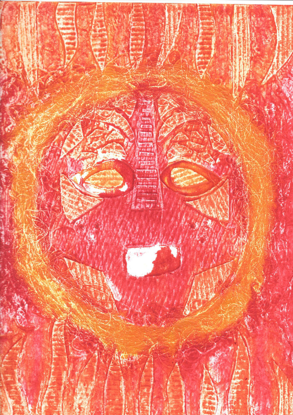This is a printmaking project I had done called "Tribal Man". I used the same plate but different colored inks to make each edition.