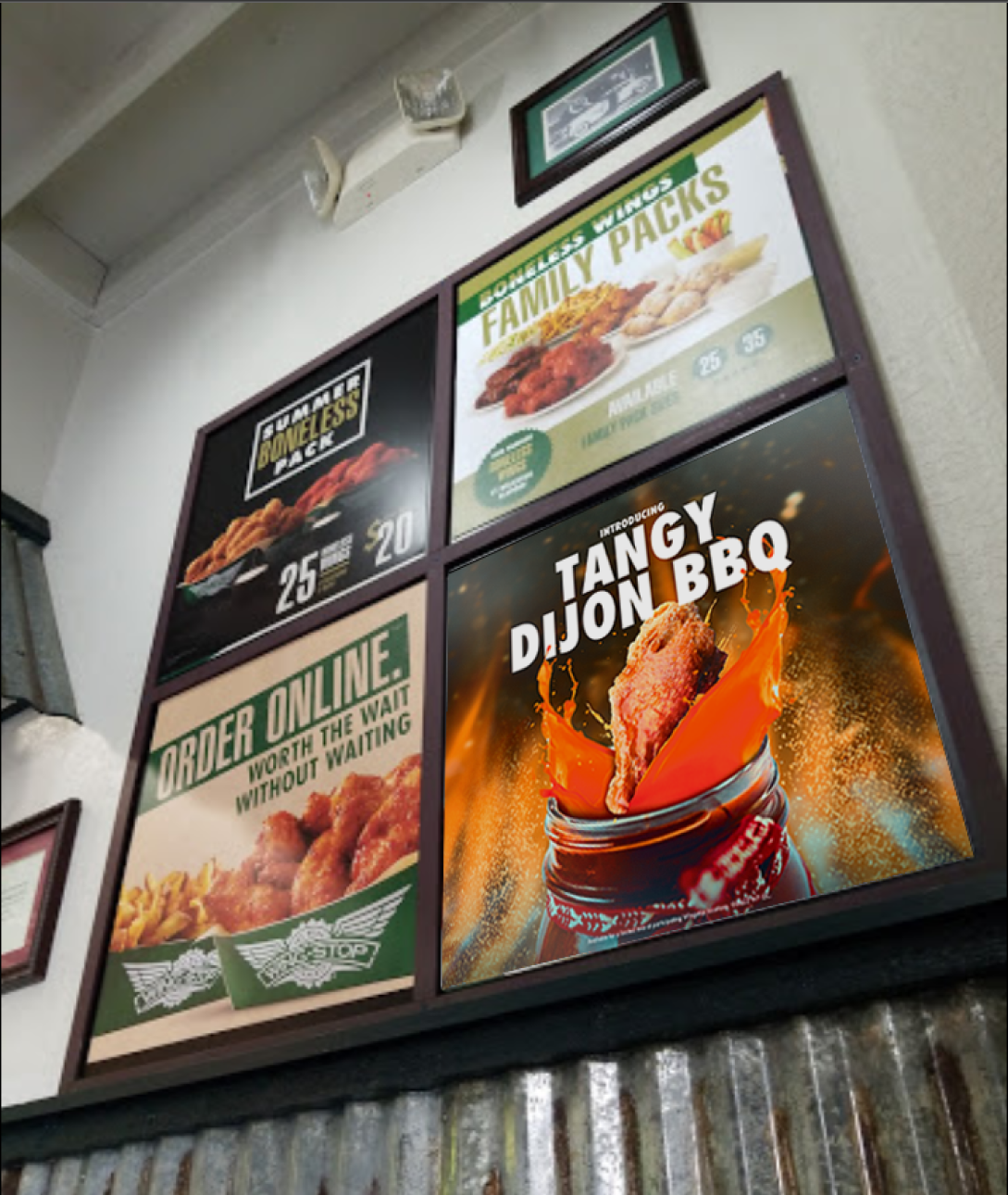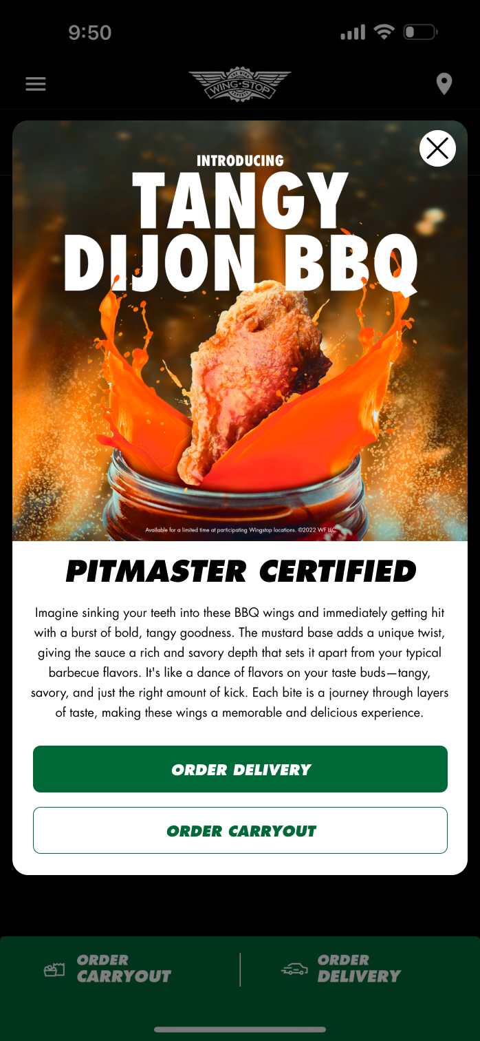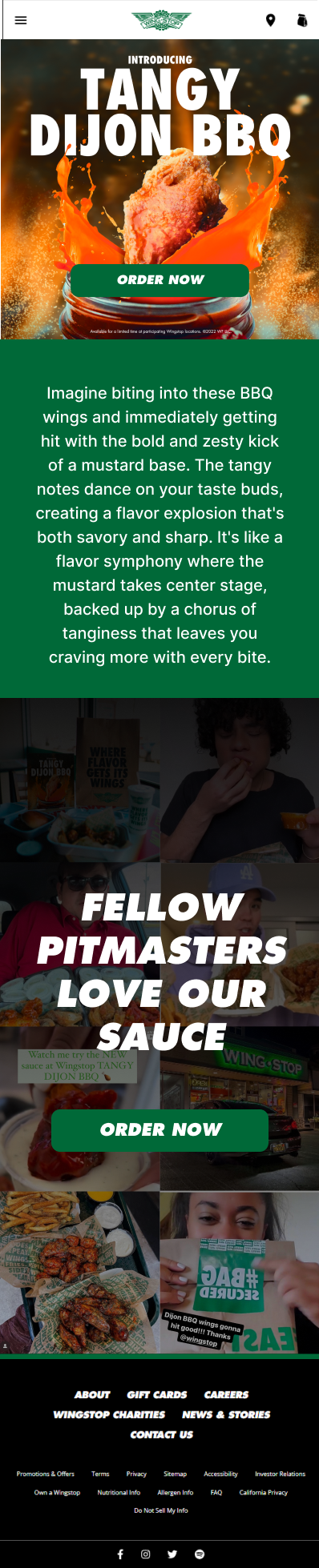 This was a project given to my by winbgstop as a part of their interview process. The assignment was to establish a flavor identity and design a ½ fold web page featuring the limited time flavor BBQ wing. This new BBQ wing flavor has a distinct mustard base and tangy flavor profile. I was tasked with developing a wing flavor inspired by a provided description, alongside creating a banner for the company's webpage. My approach mirrored the methodology I employed at my previous job, encompassing banners for both mobile and desktop interfaces, an app banner, social media content, and in-store printed signage. This allowed me to demonstrate my proficiency in handling diverse creative assets simultaneously. In terms of creativity, I opted for a classic Southern-style BBQ wing flavor with an added Dijon twist, aligning seamlessly with traditional BBQ preparation. To visually convey the sauce profile, I depicted it in a mason jar within a BBQ pit. I aimed to capture the essence of Wingstop's past promotional artwork, employing a photomanipulation design where the wing takes center stage, surrounded by exploded ingredients for a dynamic visual impact. In essence, this project was an enjoyable opportunity for me to showcase my burgeoning copywriting skills, manage a regular workload effectively, and deliver a multitude of assets and a product that aligns with established brand guidelines.